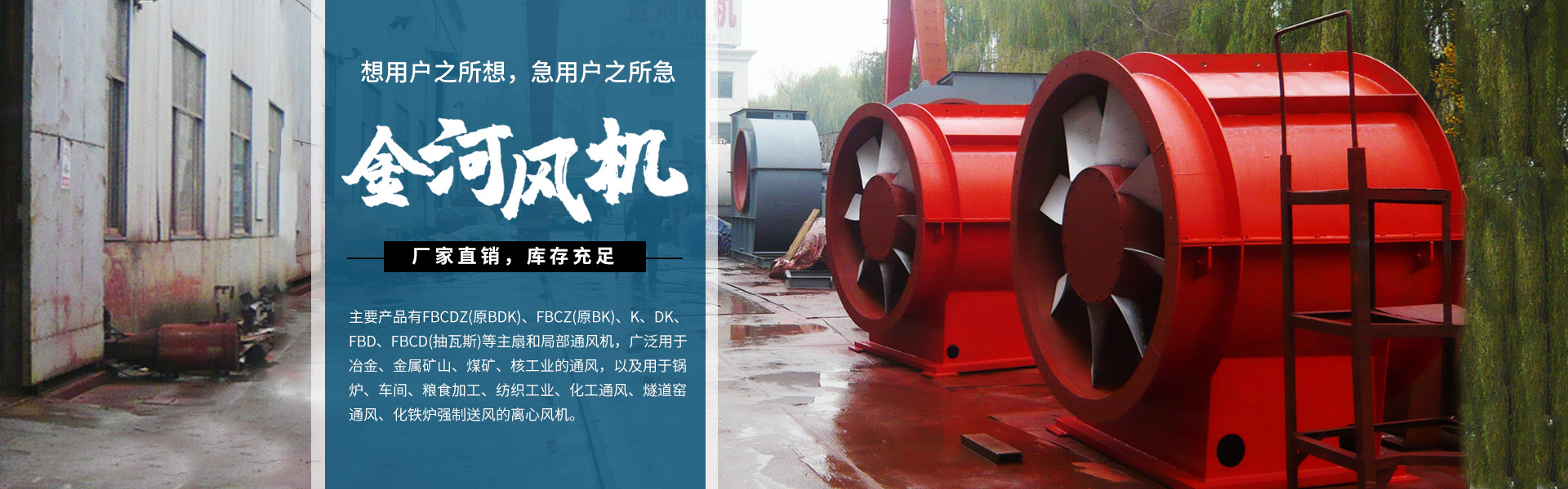 淄博金河風(fēng)機(jī)有限公司位于山東省淄博市周村區(qū)南郊鎮(zhèn)。東倚博萊高速,西臨濟(jì)青高速,南靠309國(guó)道,北傍膠濟(jì)鐵路,交通方便,通發(fā)達(dá)。我公司技術(shù)力量雄厚,制造設(shè)備精良,測(cè)試手段完善,產(chǎn)品均有生產(chǎn)許可證、煤礦礦用產(chǎn)品安全標(biāo)志證書和防爆合格證。提供70多個(gè)系列,800多種規(guī)格。主要產(chǎn)品有FBCDZ(原BDK)、FBCZ(原BK)、K、DK、FBD、FBCD(抽瓦斯)等主扇和局部通風(fēng)機(jī),廣泛用于冶金、金屬礦山、煤礦、核工業(yè)的通風(fēng),以及用于鍋爐、車間、糧食加工、紡織工業(yè)、化工通風(fēng)、燧道窯通風(fēng)、化鐵爐強(qiáng)制送風(fēng)的離心風(fēng)機(jī)。